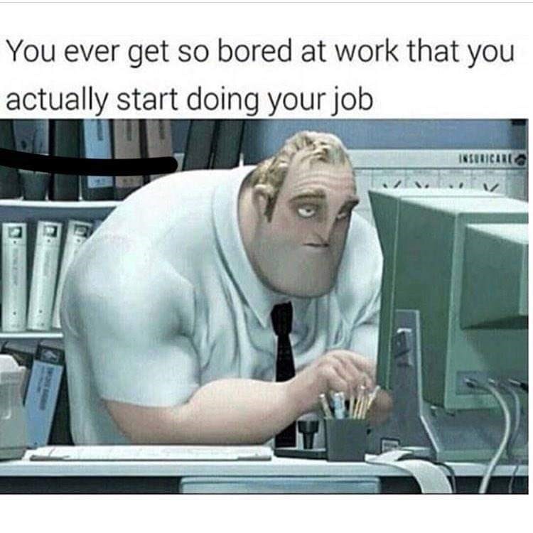Mar 28, 2021 · if you don't have any work to do from home and want to keep yourself engaged in some kind of activities so that you do not get bored then you must check out these fun things to do when you are bored also you should take some time to scroll your social media feeds and check out these trending memes created by our meme community on this lockdown. Feb 25, 2019 · let's start off the work week with some funny memes about work. Bored panda has compiled a list of hilariously funny memes that perfectly sum up every job interview ever, and it's just what you need to ease the pain. Aug 08, 2021 · tags: Do you feel sad and need a little cheer? Lame jokes, spacing out, you name it, we've got it all. See more ideas about work memes, hilarious, bones funny. Jun 11, 2021 · parks & recreation: 'tis the season of going to the beach, lounging by the pool, and enjoying the beautiful weather with your loved ones. Then this collection of funny work memes compiled by bored panda is especially for you as there haven't been any more relatable memes ever. 3 day work week meme 5pm meme 9 5 life memes a funny meme advertising memes all work and no play meme are you stupid meme at work like meme back to work meme bad day at work meme before work after work meme best job ever meme best office memes best sarcastic memes best sarcastic memes ever best work memes best work memes ever better job. Jun 08, 2021 · suns out, memes out! Apr 19, 2020 · are you feeling bored out of your mind?